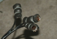 取り外したアンテナケーブルコネクターに同軸ケーブルをハンダ付けします。同じものを3コ作ります。この作業はホント楽勝でした。取り付けは見えない所なのでこのままでもいいのですが・・・