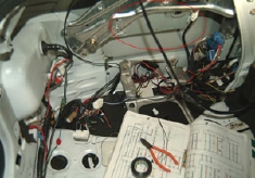 2#系のTVチューナーを組み立て結線しテストしました。車両自己診断機能を利用してTVチューナーの接続をみたらちゃんとOKでました。そして音声もステレオ対応になりなかなかイイ感じになりました。写真手前に写っている丸められたコードはVTRアダプター用の音声ライン信号線の取出したものです。