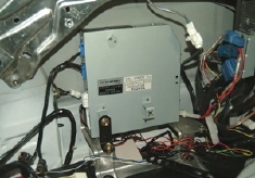 まずは1#系のTVチューナーを取り外します。今回の交換で一番の難点になったのがチューナーに入るアンテナケーブルコネクター形状の違いの処理作業でした。元に戻すことはありませんが、車両の既存の配線は触らずに行こうと言う事で上画像の赤マル部分にあったアンテナコネクターを取り外しました。