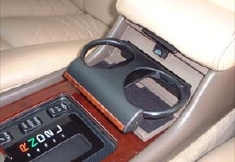 今回の加工でこだわった部分、ウッドの端面部分ですがカップホルダーのカーブに添わせてカットして仕上げ、上部は角仕上げ、下部は角マル仕上げをしてみました。本当はカップホルダーの貼付ける部分をウッド分だけくり抜き加工しようかな~なんて考えましたが、私の加工技量では到底できそうにないので諦めました。
