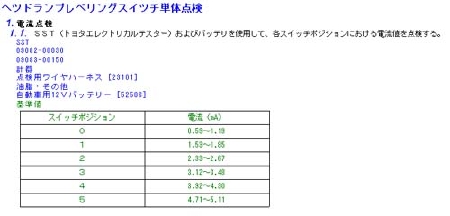 現行エスティマのレベリング関係配線図と点検方法の資料