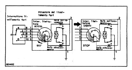 ヨーロッパ仕様のレベリングの件ですが、配線図で判断すれば、純アナログ制御?ですよねえ、モーターに連動したカム接点が、スイッチの接点を通り、コモン端子でアース落ちする事により、モーターユニットの2回路リレーのコイルに電気が流れ、リレー接点をONさせて、モーターがワンステップ回転すれば、連動しているカム接点が離れてリレー接点も離れ、電気が止まる訳ですね、う~ん…、面白い。『しかし、ジェニュインさんって凄い !!』