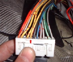 結線は、運転席足下(Aピラー下部)のドアーコントロールリレーと、D席ドアーハーネスのカプラーのところで行います。まず、ドアーコントロールリレーの18ピン乳白色コネクターの15番(黄・赤線)から枝割りで配線を引き出します。次に、D席ドアーハーネスの「J1」青色異形コネクターの、14番(赤/白線)から枝割りで配線を引き出します。引き出してきた2本の配線をダイオードで繋げばOKです、方向は、D席ドアーハーネスのコネクターから取り出した配線に、ダイオードの「アノード側」を繋ぎ、ドアーコントロールリレーのコネクターから引き出してきた配線を「カソード側」に繋ぎます。D席ドアーハーネスのコネクターから、ドアーコントロールリレーのハーネスに向けて電気が流れるようにダイオードを入れて下さい。これにより、リモコンのアンロック時、キーによるアンロック時のみに、ルームランプ(イルミネーティッドエントリー)が点灯します。