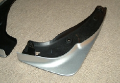 最初はマットガード単品で色合わせしてシルバーに塗ってもらい装着していましたが、やはり色の差が気になりそれなら下部を全部塗ってしまえっ!と言う事で車ごと入院させ、プロテクター&前後バンパーを全て外して塗装していただきました。