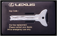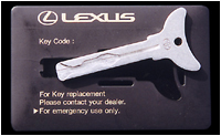 レクサス用緊急カードキーケース、国内仕様の物はレクサスロゴ部分がセルシオロゴになります。