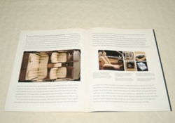 ここまで高級感を出しているのに、製本がホッチキスで止める方法でしてある所が残念、セルシオのカタログのような製本で仕上げて欲しかったですね。