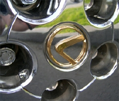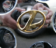 10後期メッキはありませんでしたが他の車種があったので撮影してみました。また、ここで一つ興味深いのは2001年LS430と2003年LS430にメッキにゴールドLがあったので見てみたら、なんとLが違うんですねぇ。添付画像を見てもらうとわかるけど純正Lとかっこ悪いLと2種類付いていました。2001年には純正Lです。これは不思議ですねぇ。でもオプション番号は同じだとの事。ディーラーでも聞かれて初めてわかったとの事。まあ、こちらではあまり気にしないのかも知れない。でも、気になったのはこれらメッキのゴールドLは純正オプションではないとの事です。正確には純正オプションらしいのだけれどアフターマーケット部品との事です。つまりはLEXUSもしくはTOYOTAでは作ってないけれどディーラーオプションになっていると言う事らしいです。しかし、現在のゴールドLはかっこ悪いLに全てなっているかは不明らしい。LS430で言えば2001年も2003年モデルもホイールが同じであれば同じ品番でしかオーダーしないとの事です。したがって現在2種類存在とは思えないとの事ですね。2001年モデルまでは純正Lである事は写真を見ても判るけど取りあえず本日ディーラーに止まっていたメッキにゴールドLの付いた車種のを全て撮影して添付しました。