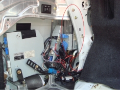 アンプの反対側のトランク左奥(赤丸部分)に