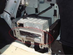 画像右側がファブリック内装用アンプ、左側が革内装用アンプ、装着場所は右上画像の