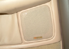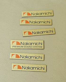 ドアスピーカーのナカミチ化にともなう全てのスピーカー交換、今まではスピーカーグリルにJBLのプレートを貼付けていましたが、折角ナカミチに交換したのだからさり気に主張したくなりナカミチプレートを色々と物色しましたが、ところがナカミチ純正やトヨタ純正でもそのような部品は存在しません。ネット上で色々と探してみましたがやはりありませんでした。仕方ないので自作する事にし、制作にあたり見栄えと耐候性の問題を色々と考え、素材はつや消し金紙、ベースを黒ケント紙としました。ナカミチロゴはカタログからスキャニング、PCソフト上で任意の大きさに変更しレイアウト、金紙にリボンタイプのプリンタで出力しUVカットフィルムを圧着、裏面にスプレー糊を吹き付け黒ケント紙を圧着しました。プレートはナカミチロゴだけのもの(ドアグリル用)とプレミアムサウンドシステムの入ったもの(ウーハ-グリル用)を作成、カットして仕上げたプレートの周囲はポスターカラーの黒でブラックアウトして完成。ロゴのNマークは赤にしてアクセントを付けてみました。どうです?なかなか良い仕上がりでしょ(^^)