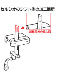 セルシオ側のシフトロッド加工箇所、赤部分を