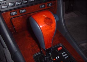 本杢&本革の素材や形状にこだわって取り付けました。セルシオの“ぼってりしたシフトノブ”と違い、スリムでなかなかカッコ良いです。なにせド素人の作業ですから専用工具があるわけでもなく、セルシオ側のシフトロッドの金属部分の削り作業加工に時間がかり、思わず途中で挫折しそうになりました(>_<)。またプログレのシフトノブとのフィッテイング等、内部加工等も結構大変ですが完成後の満足度は大きいですし、純正品なのでいやみが無くしっくりマッチしています。