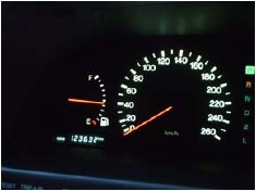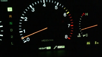 260Km/hメーターパネルを加工してHEIGHT&SPORT表示を取り付け、エアサスの