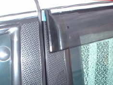 10系セルシオにお乗りの方で、このバイザーの取り付けをお考えの方が一番気になる部分のリアのバイザーの加工部分のアップです。切断加工してありその後、接着し黒のカッティングシートで覆ってあります。加工精度もかなりいいので取り付けてしまうとまさに純正品です。バイザーの取り付けのブラケットは各ドア2ヶ所の金具とバイザー裏面の強力な両面テープでの固定になります。リアドアの前側の金具ですが私は取り付けていません(バイザー部分の固定ピンのみ取り付け)